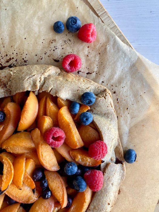 Preheat the oven to 400ºF. In a medium bowl, whisk together the flour, cornmeal, coconut sugar, baking powder, and salt. Use your fingers to rub the butter into the flour mix until it resembles a coarse meal with butter pieces no larger than peas.