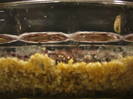 Preheat the oven to 325, and lightly grease a tart pan (or a pie dish—my tart pan is in Salem, so that’s what I used).