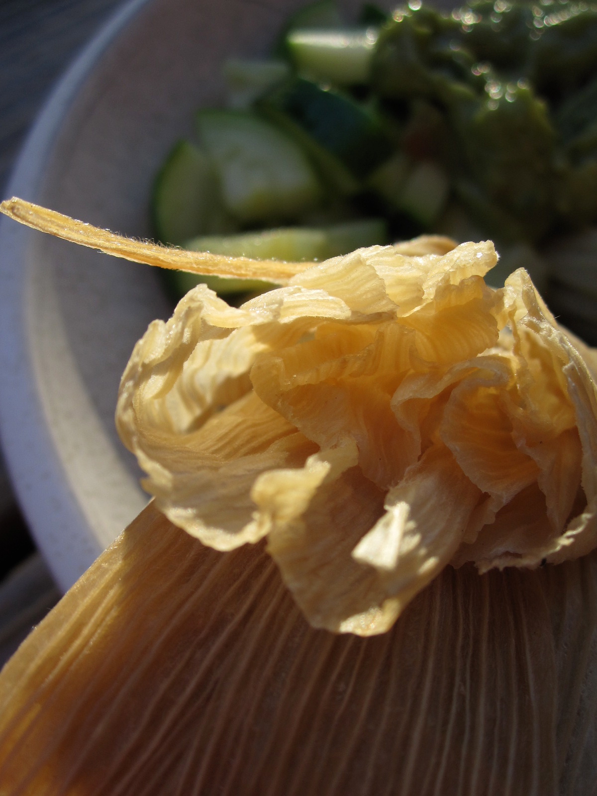 - 1 6 oz bag of corn husks, soaked for at least 3 hours [place in a large pot, pour water over, and weight with a small pan so they stay submerged]