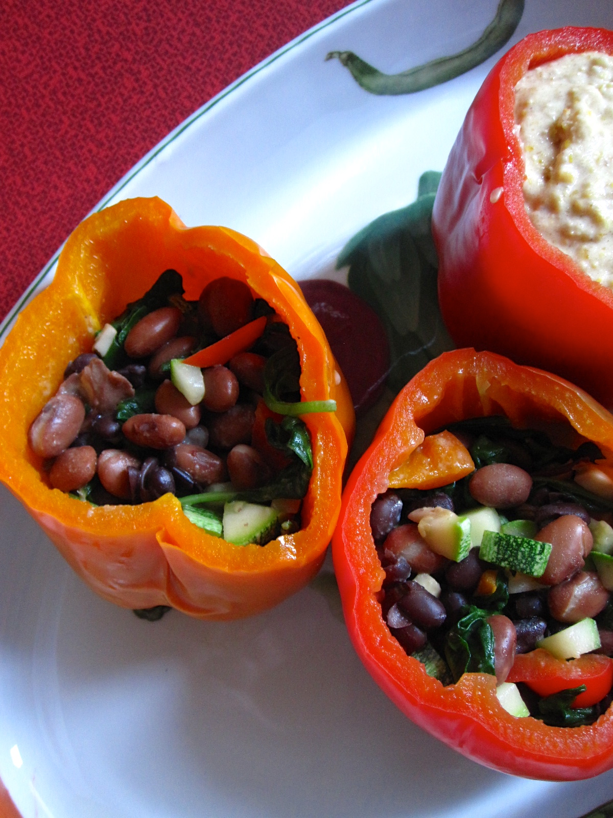 Red Beet, Roasted Corn and Zucchini Hash, with Egg and Avo
